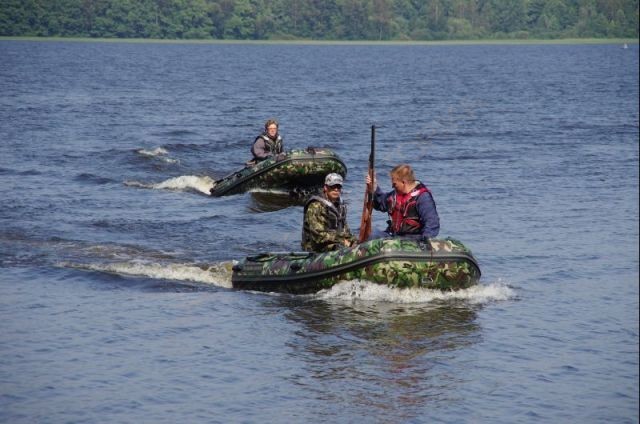 Надувная лодка имеет камуфлированный окрас.