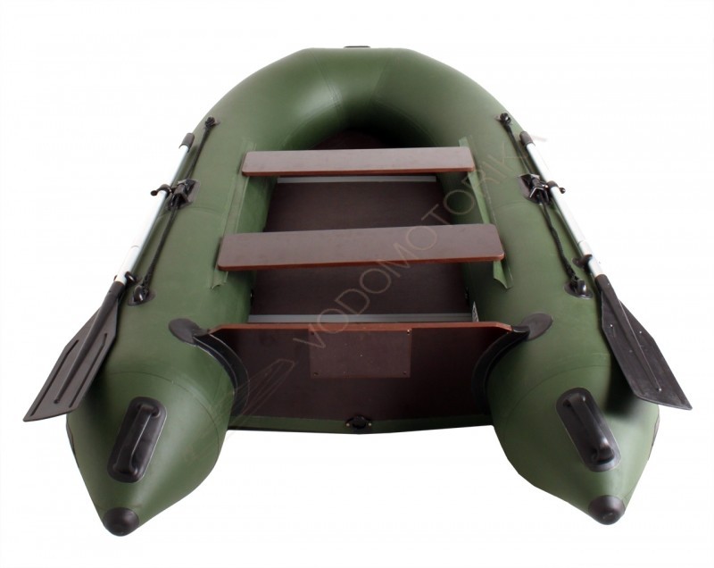 Надувная лодка имеет стационарный транец из водостойкой фанеры.
