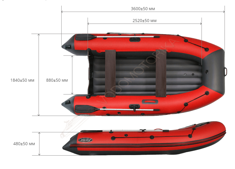 REEF 360НД Тритон имеет длину 3.60 м при ширине 1.82 м.