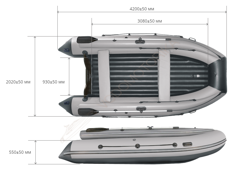 REEF 420Fi НД Тритон имеет длину 4.20 м при ширине 1.93 м.