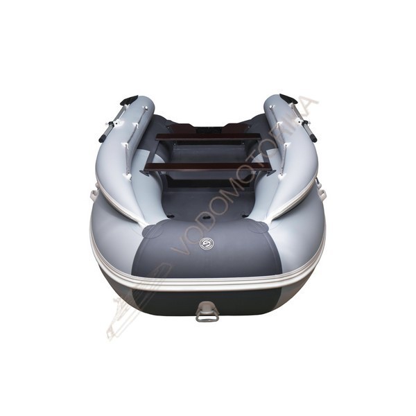 На лодке установлен стационарный транец, жестко приклеенный к баллонам.