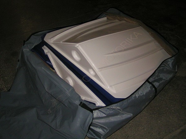 Лодка складывается пополам и упаковывается в сумку-чехол.