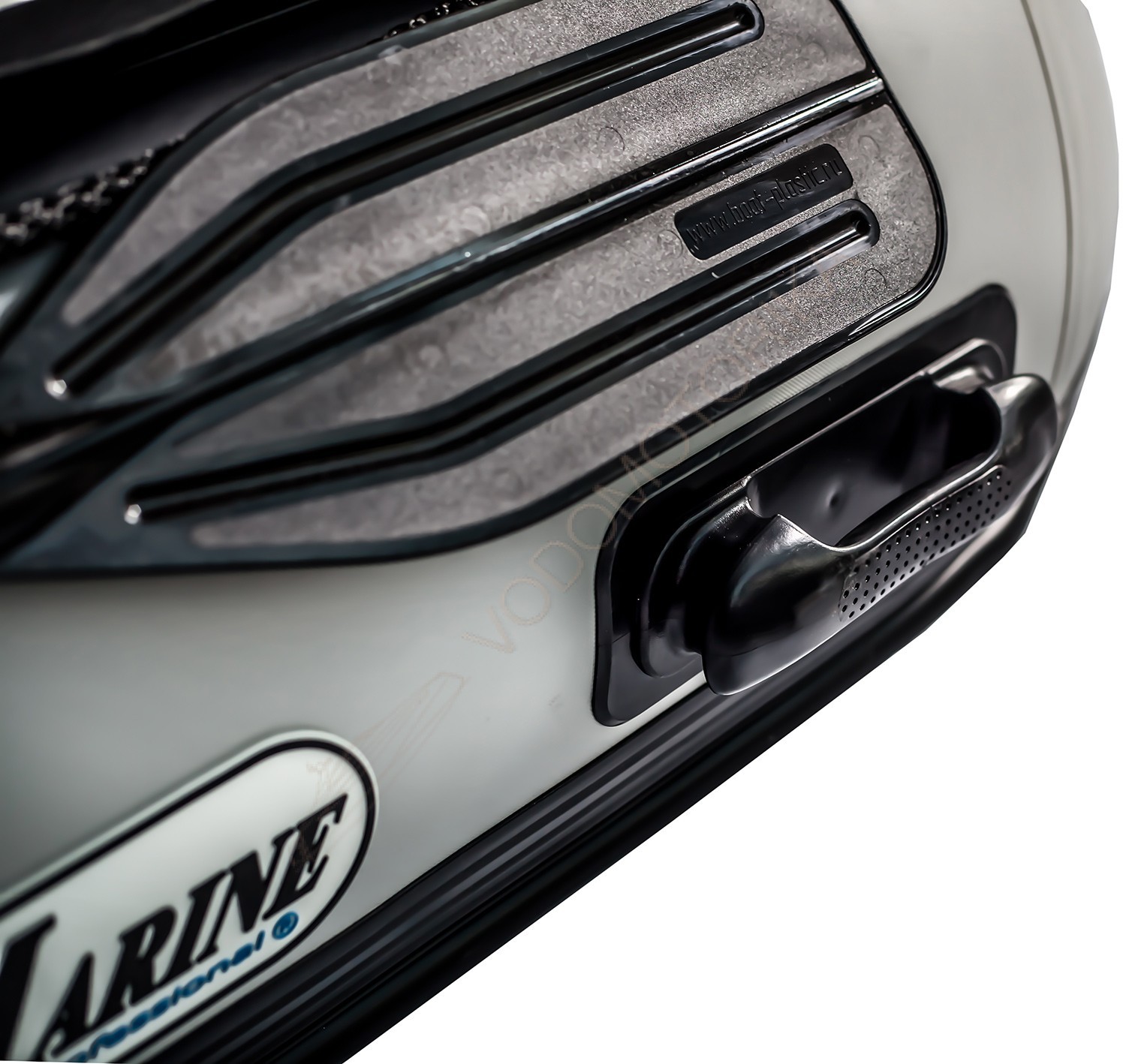 Лодка оснащена укрепленным дном с противоскользящим покрытием, дополнительной броней по килю и баллонам – 5 мм.