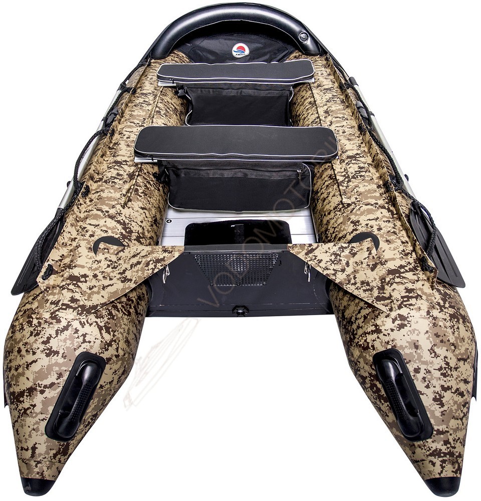 Сверхпрочная проклейка из полиуретановой ленты (броня), толщиной 5 мм по всей длине баллонов и килю, которая позволяет использовать лодку в суровых условиях.
