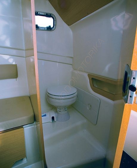 В носовой части располагается полноценная каюта с 2-мя спальными местами (или 5-ю сидячими) и отдельным туалетом.