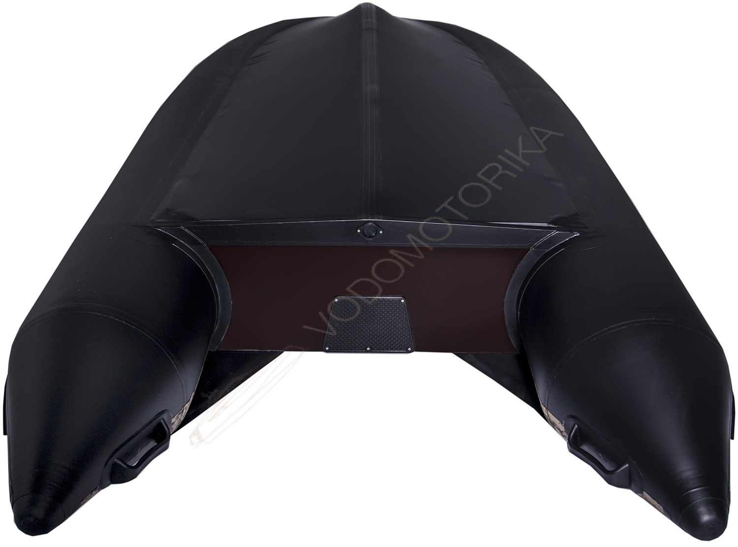 Надувная лодка имеет стационарный транец, жестко приклеенный к баллонам.