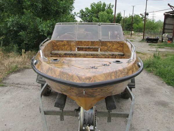 Оболочка корпуса и палубы изготовлена методом контактного формования из стеклопластика на основе полиэфирной смолы, армированной стекломатериалами, с задними и носовыми пассажирскими сиденьями..