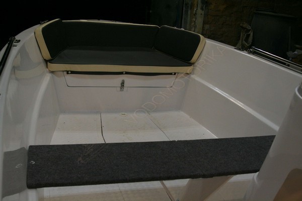 В палубной части отформованы сиденья: в носовой части – лавка с сухим рундуком, и кормовой части – лавка с рундуком для установки бензобака, аккумулятора и других нужных вещей.