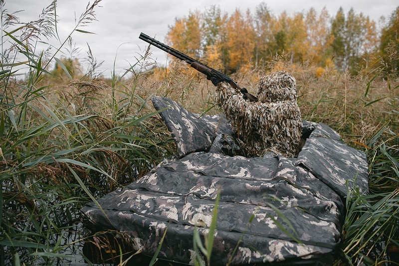 Небольшая высота делает лодку незаметной даже в низкой траве, а просторный кокпитвмещает всё необходимое снаряжение.