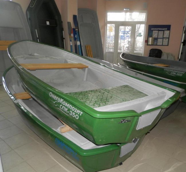 В комплект ОнегоКомпозит СЛК-350 входит стеклопластиковое сиденье на носу, деревянное посередине и стеклопластиковое на корме (со встроенным рундуком для поклажи).