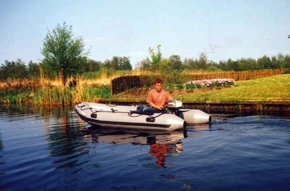 На лодке установлен стационарный транец, жестко приклеенный к баллонам.