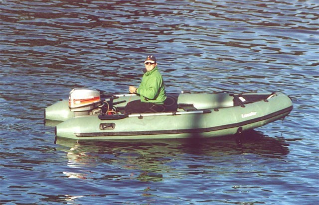На лодке установлен стационарный транец, жестко приклеенный к баллонам.