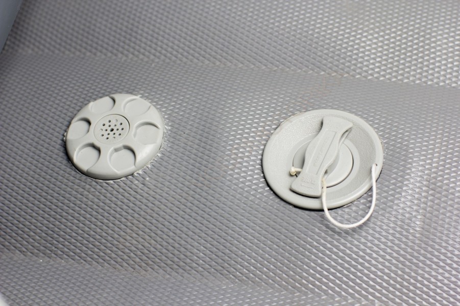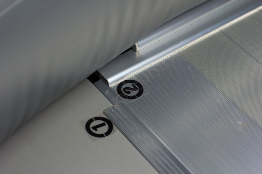 Лодка комплектуется вклеенным надувным днищем низкого давления (НДНД) по типу надувного матраца.