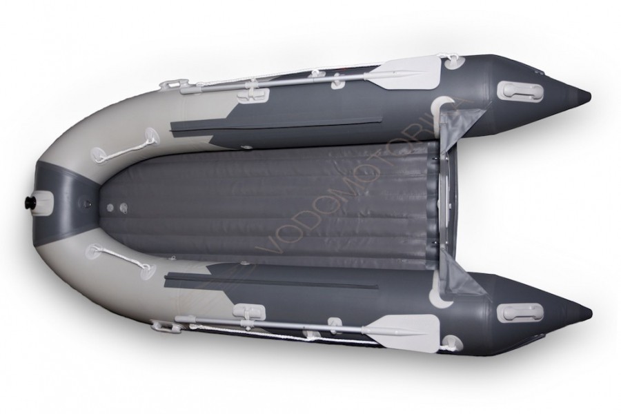 Надувная лодка поставляется в светло-сером цвете с темно-серыми вставками.