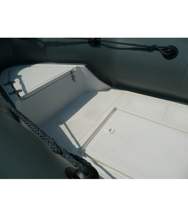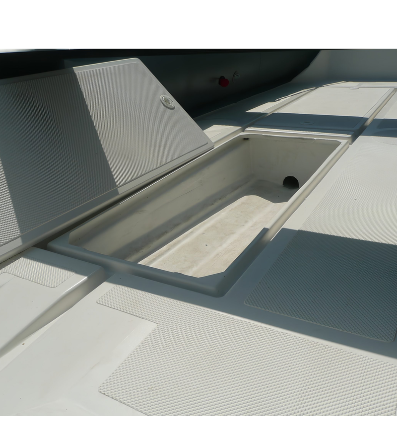 Лодка имеет стеклопластиковый пол. В палубе расположено два больших рундука и один носовой.