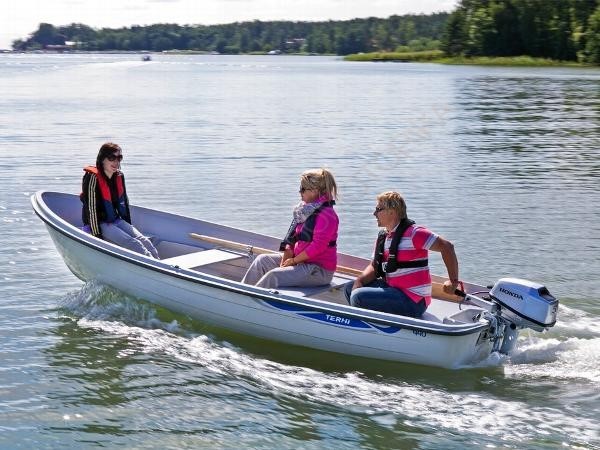 При использовании с подвесным мотором его мощность не должна превышать 10 л.с.