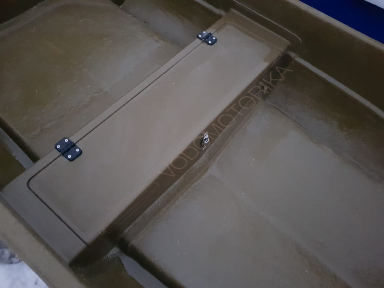 В месте крепления двигателя предусмотрена накладка из водостойкой фанеры для уменьшения износа.