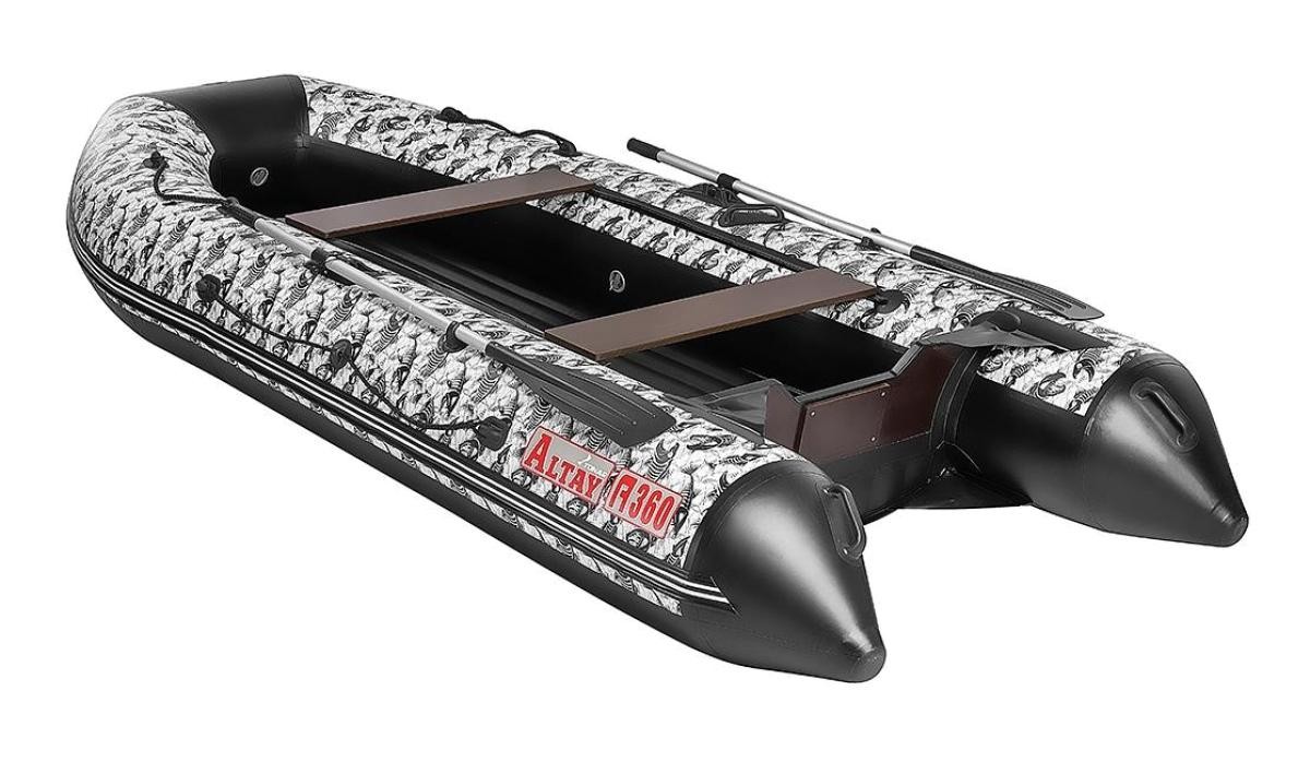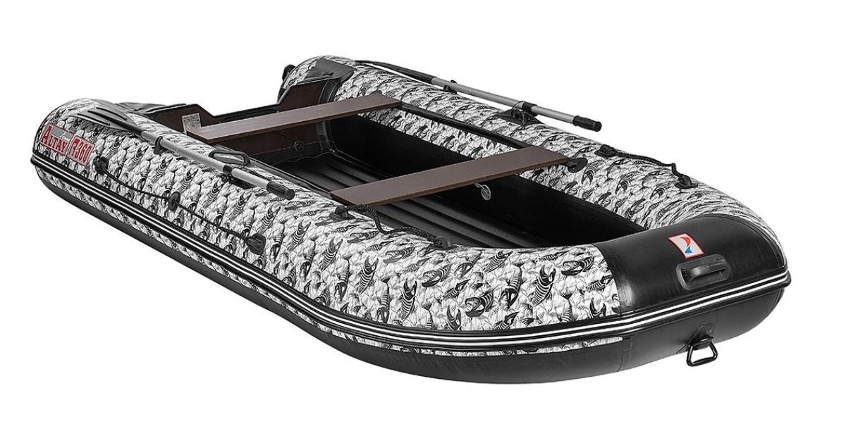 Популярная модель лодки «АЛТАЙ А360» с эксклюзивным принтом "Хищная рыба". Необычный дизайн является не только особым видом камуфляжа, но и выделит вашу лодку среди других на водоеме!