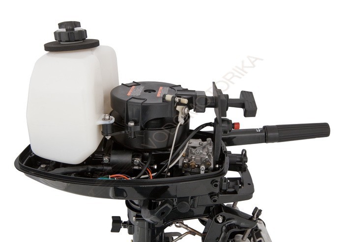 Двухтактный лодочный мотор GLADIATOR G5FHS имеет румпельное управление (ручка газа на румпеле).