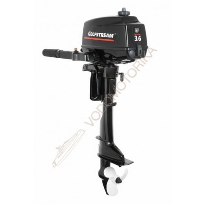 Подвесной мотор Golfstream T3.6BMS развивает мощность 3.6 л.с. при объеме 74.6 см3.