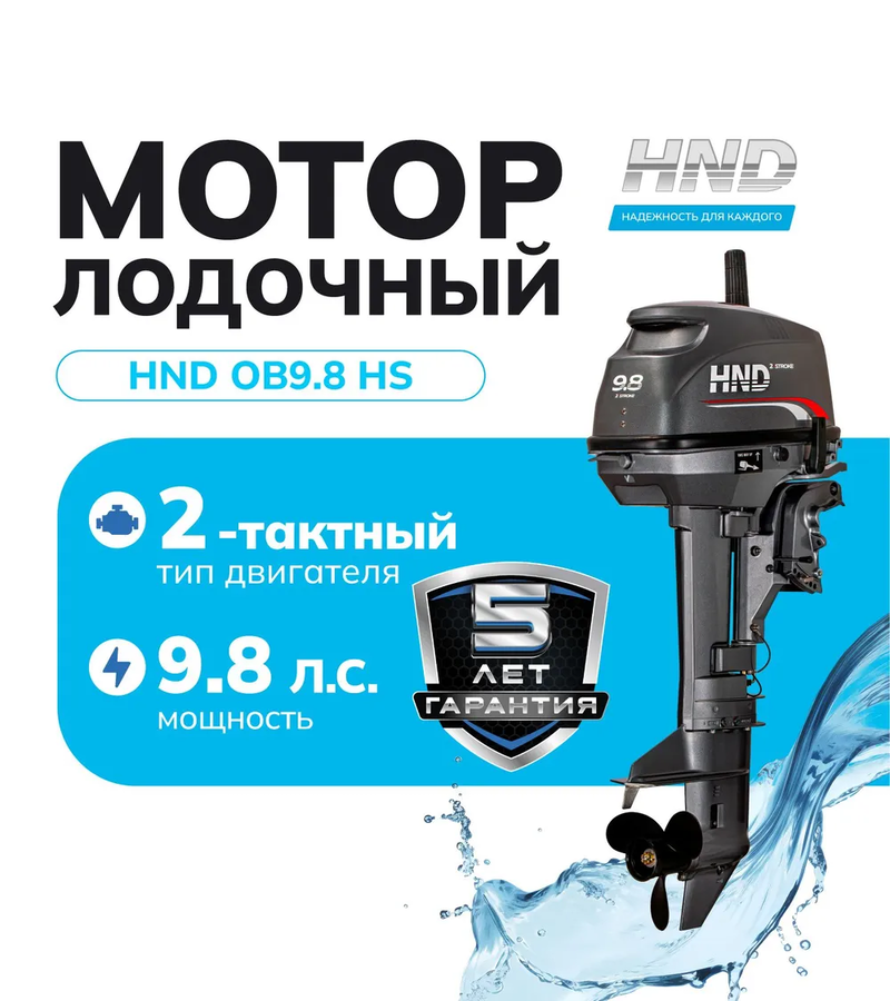 Лодочный мотор HND OB9.8HS 9.8 л.с. двухтактный