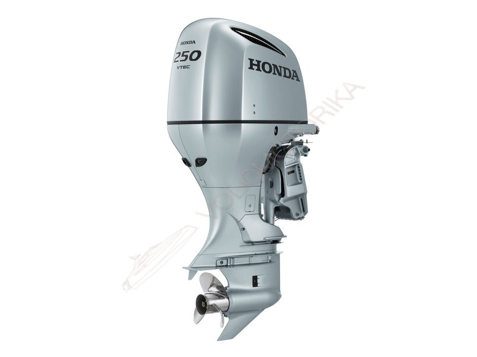 Подвесной лодочный мотор Honda BF 250 XU рассчитан под высоту транца 635 мм и имеет общий вес 290 кг.