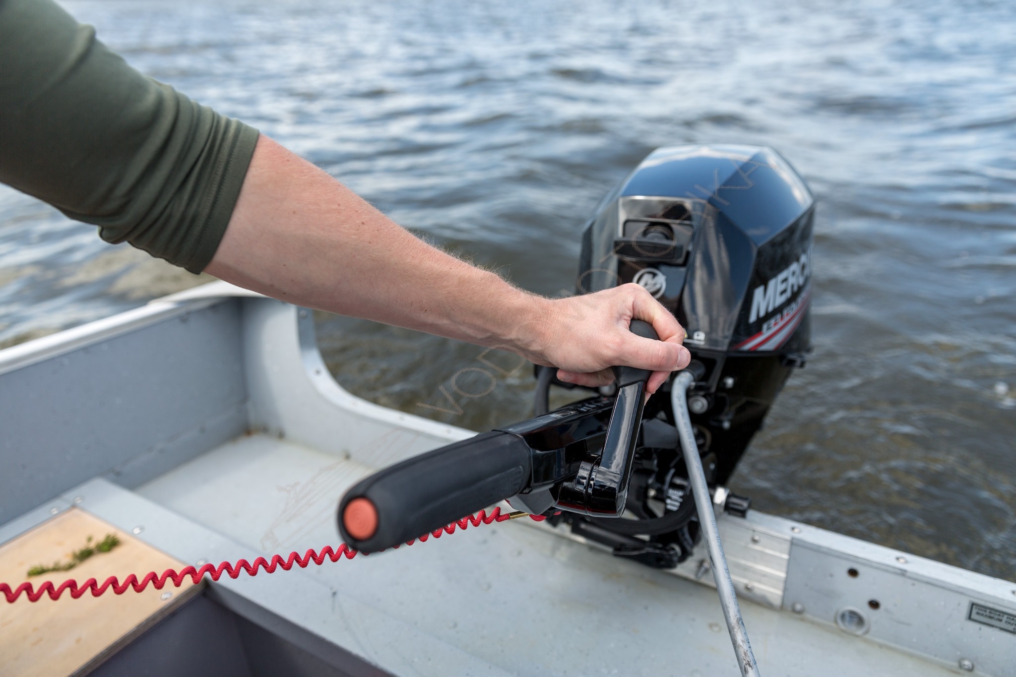 Четырехтактный лодочный мотор Mercury F15 MH REDTAIL имеет румпельное управление (ручка газа на румпеле).