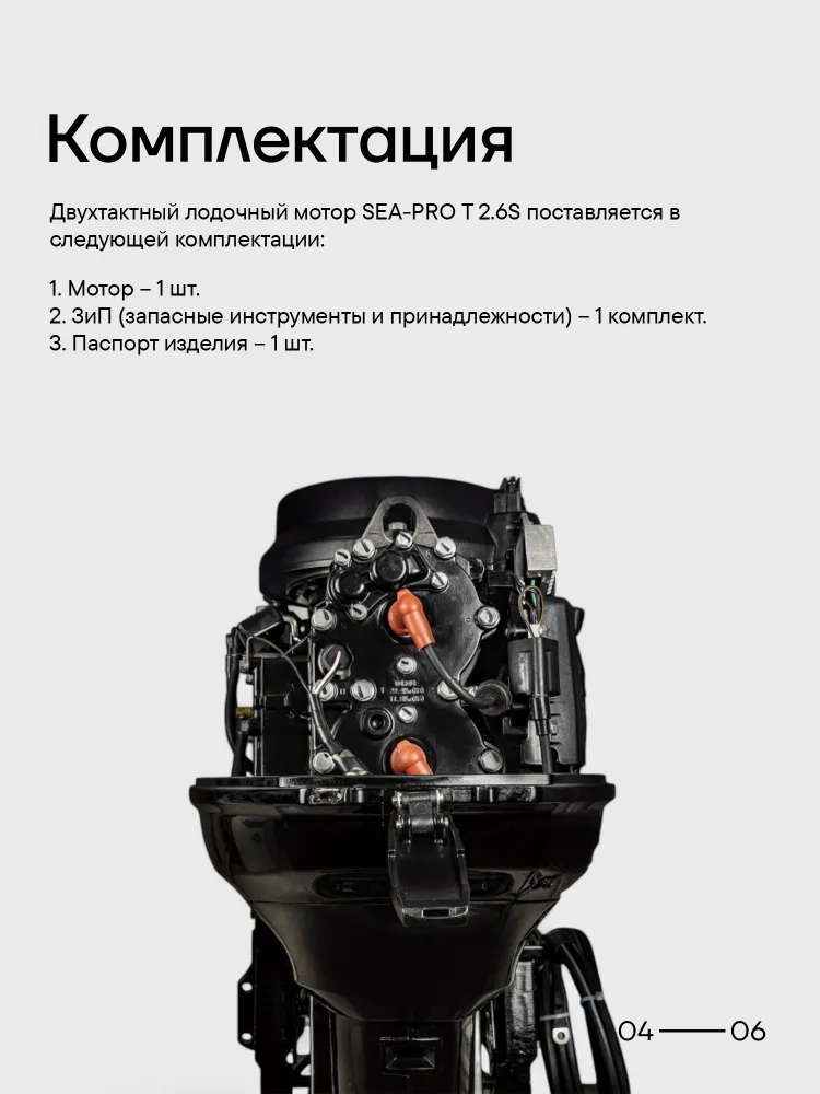 Двухтактный лодочный мотор SEA-PRO Т 2.6S поставляется в следующей комплектации.