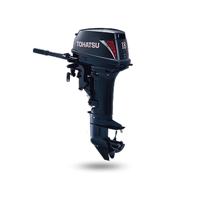 Подвесной лодочный мотор TOHATSU M 18 S рассчитан под высоту транца 381 мм и имеет общий вес 41 кг.