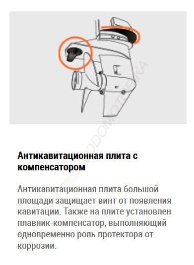 Антикавитационная плита большой площади защищает винт от появления кавитации.