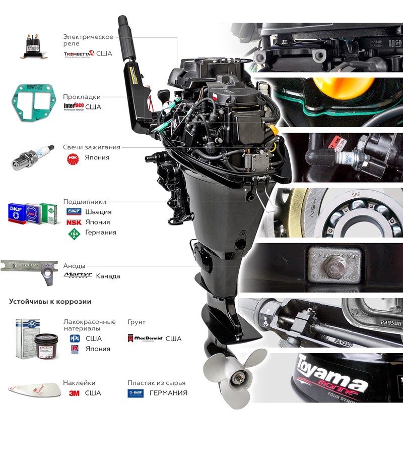 Подвесной мотор TOYAMA T18BMS развивает мощность 18 л.с.