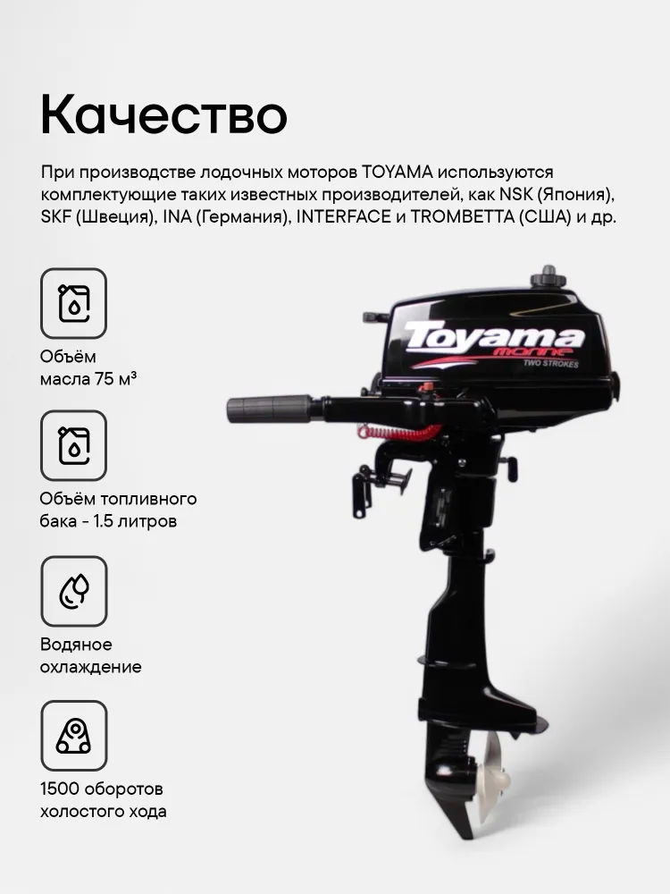 Купить двухтактный лодочный мотор TOYAMA TC3.6BMS стоит тем, кто хочет приобрести надежность за небольшую стоимость.