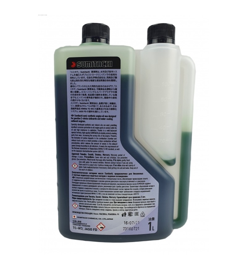 Полусинтетическое моторное масло Sumitachi, предназначено для бензиновых 2-тактных подвесных лодочных моторов с водяным охлаждением.