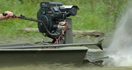 Лодочный мотор-болотоход GO-Devil 27 имеет румпельное управление (ручка газа на румпеле).