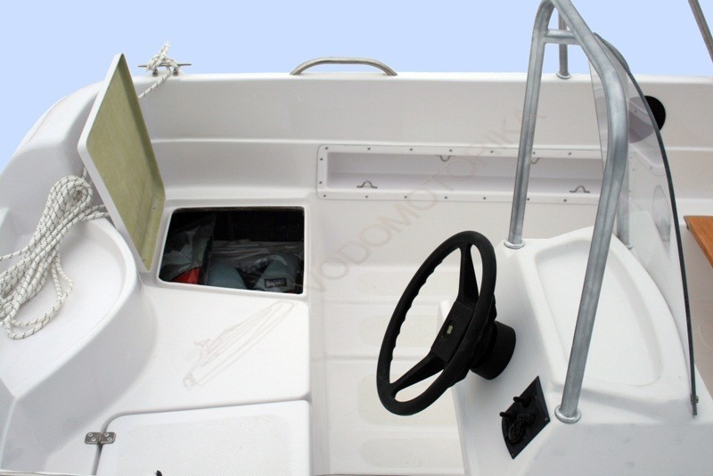 Лодка имеет отсеки для хранения якоря, аккумулятора, швартовых, личных вещей (3 рундука).