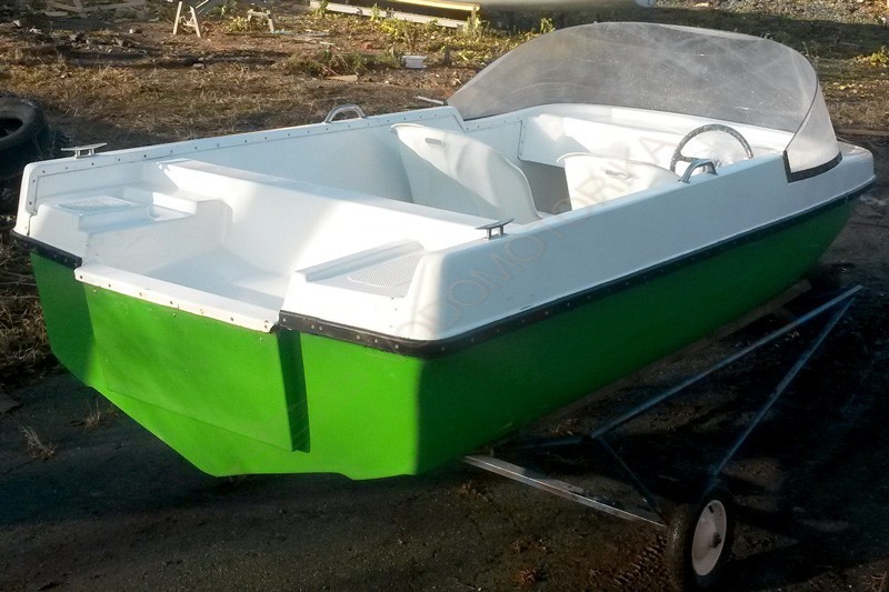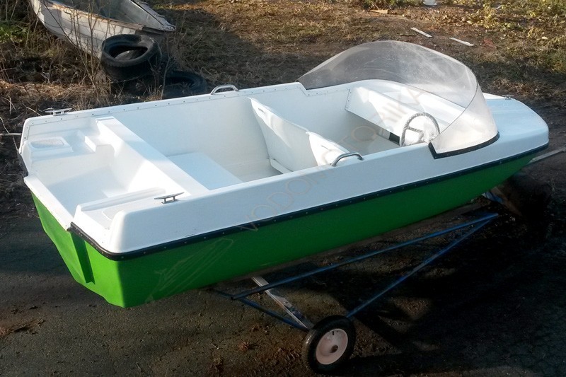 Пластиковая лодка поставляется в зелено-белом цвете.