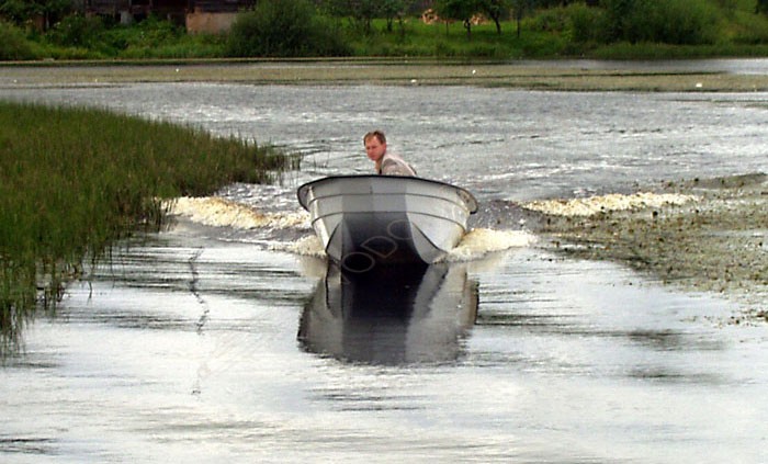 При использовании с подвесным мотором его мощность не должна превышать 15 л.с.