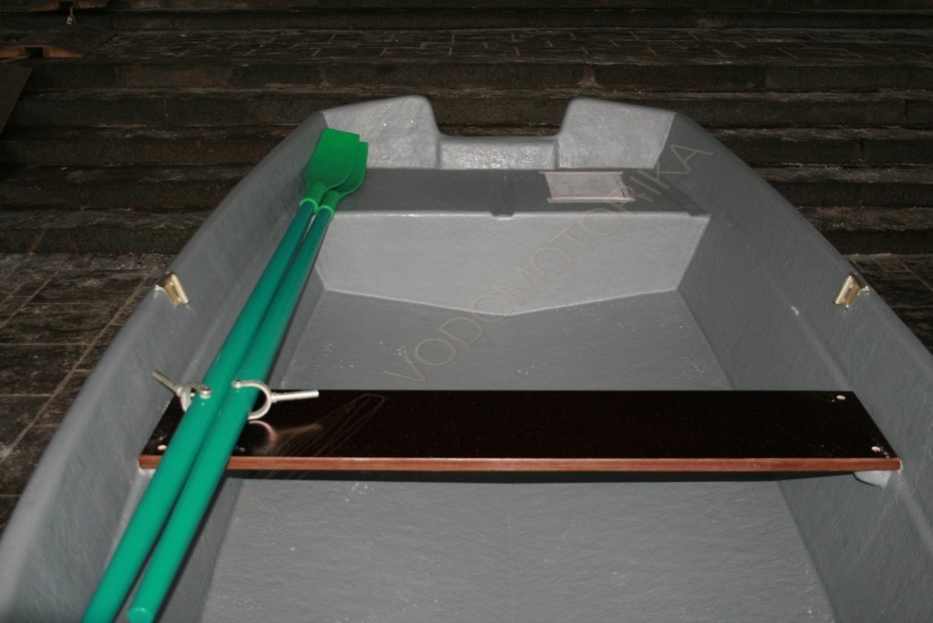 Помимо них лодка оснащена банкой из водостойкой фанеры со стационарным креплением.