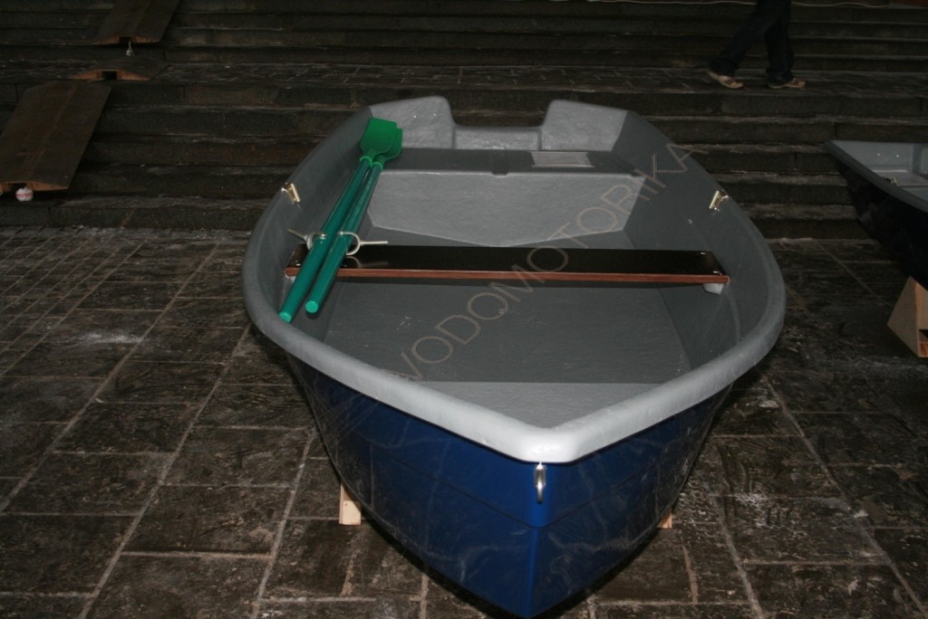 Пластиковая лодка поставляется в серо-синем цвете.