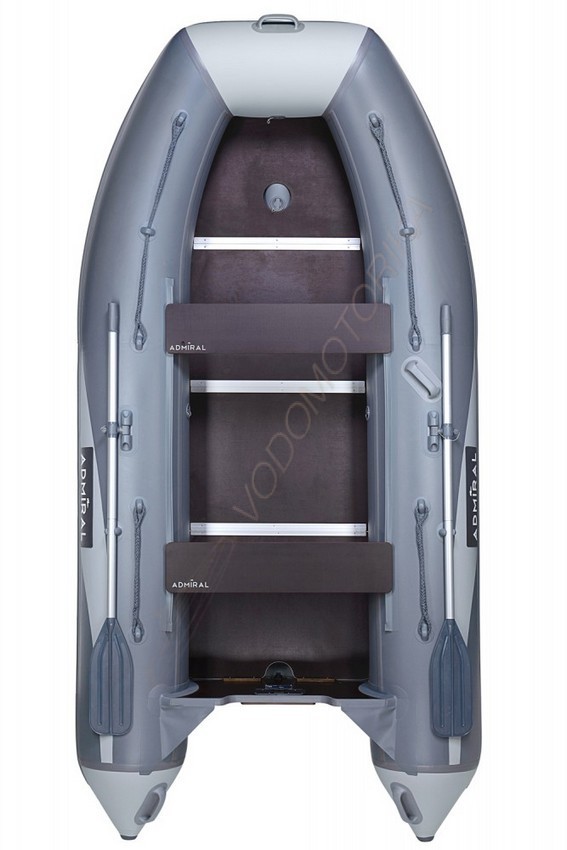 Моторно-гребная модель с надувным килем, стрингерами в цвете камуфляж. Купить надувную лодку Адмирал 335 стоит тем, кому нужна скоростная лодка для рыбалки и охоты.