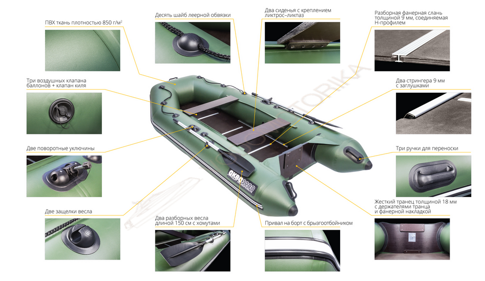 Диаметр баллонов лодки 40 см, 3 герметичных отсека.