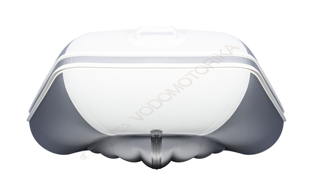 Надувная лодка имеет жестко вклеенный транец из водостойкой многослойной фанеры.