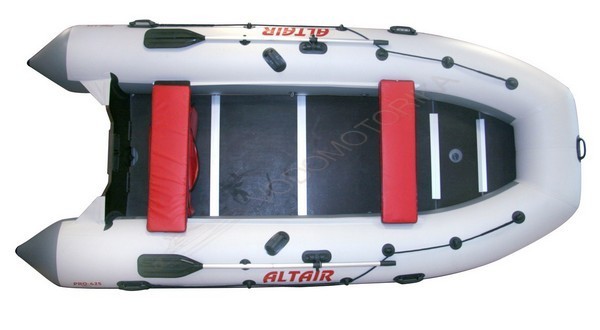 Лодка Альтаир PRO ULTRA - 425 поставляется в белом цвете с красной полосой.