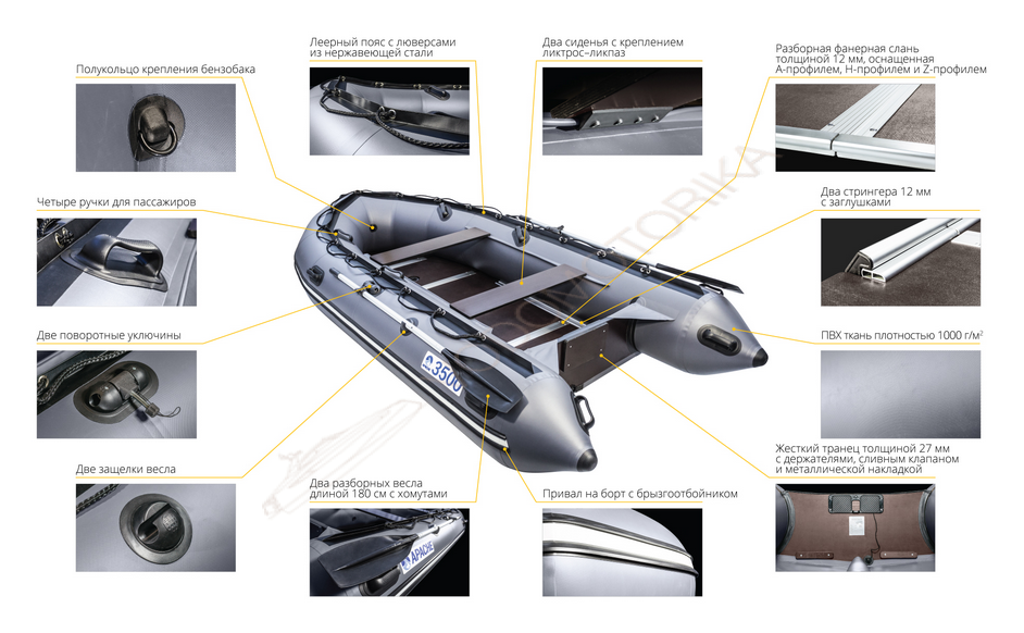 Моторная лодка APACHE 3500 СК поставляется в следующей комплектации: