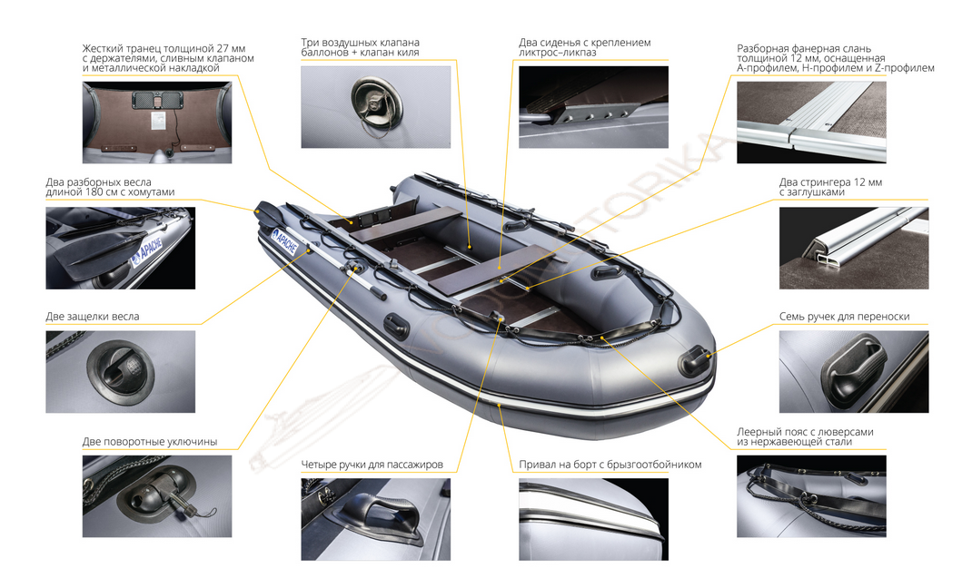 Моторная лодка APACHE 3700 СК поставляется в следующей комплектации: