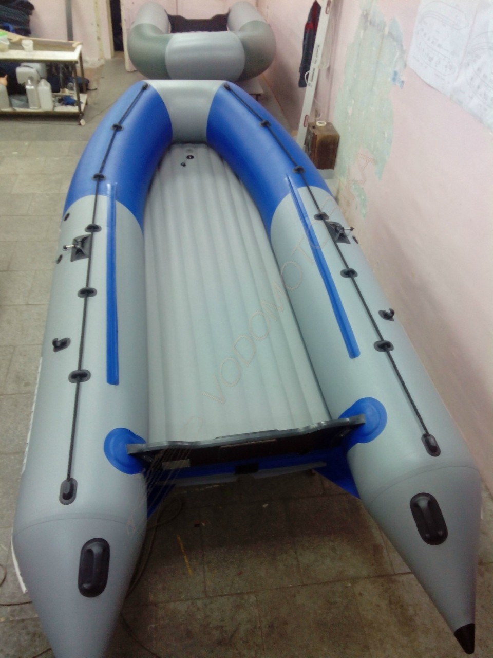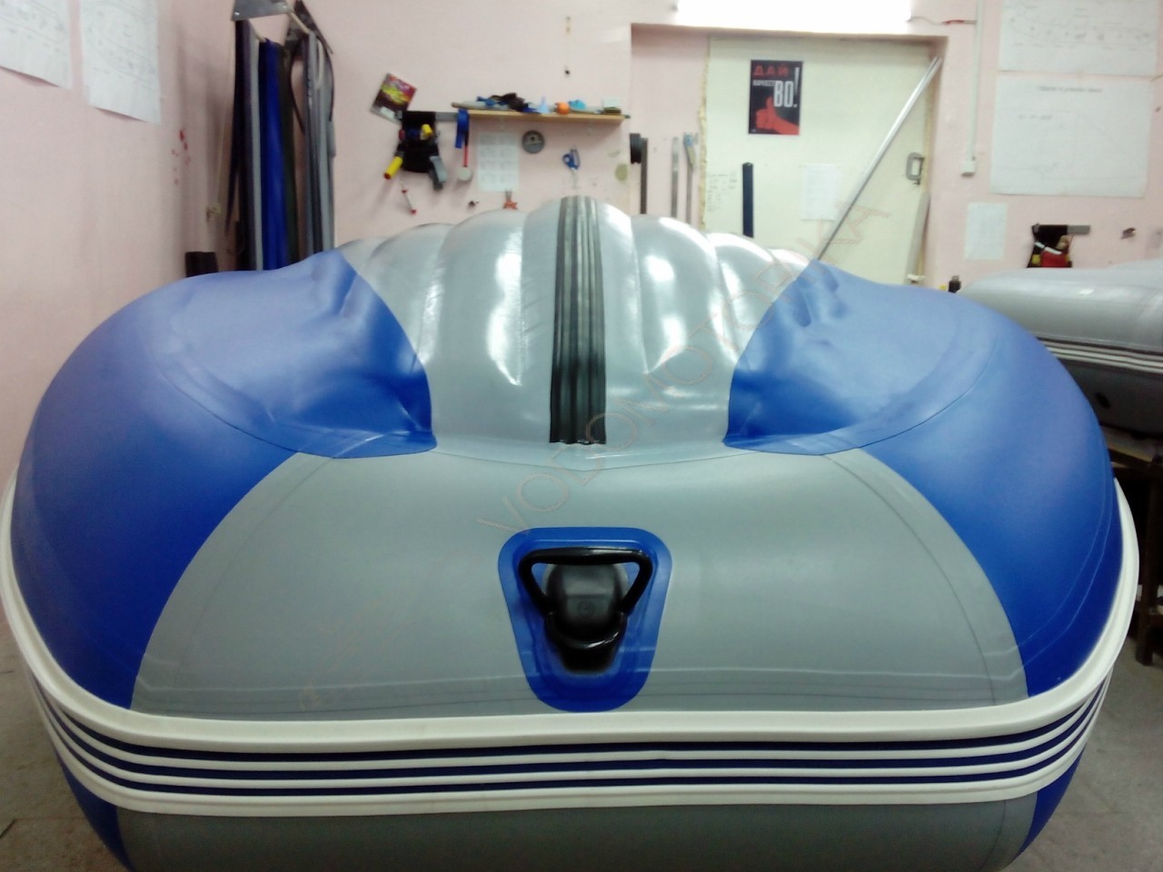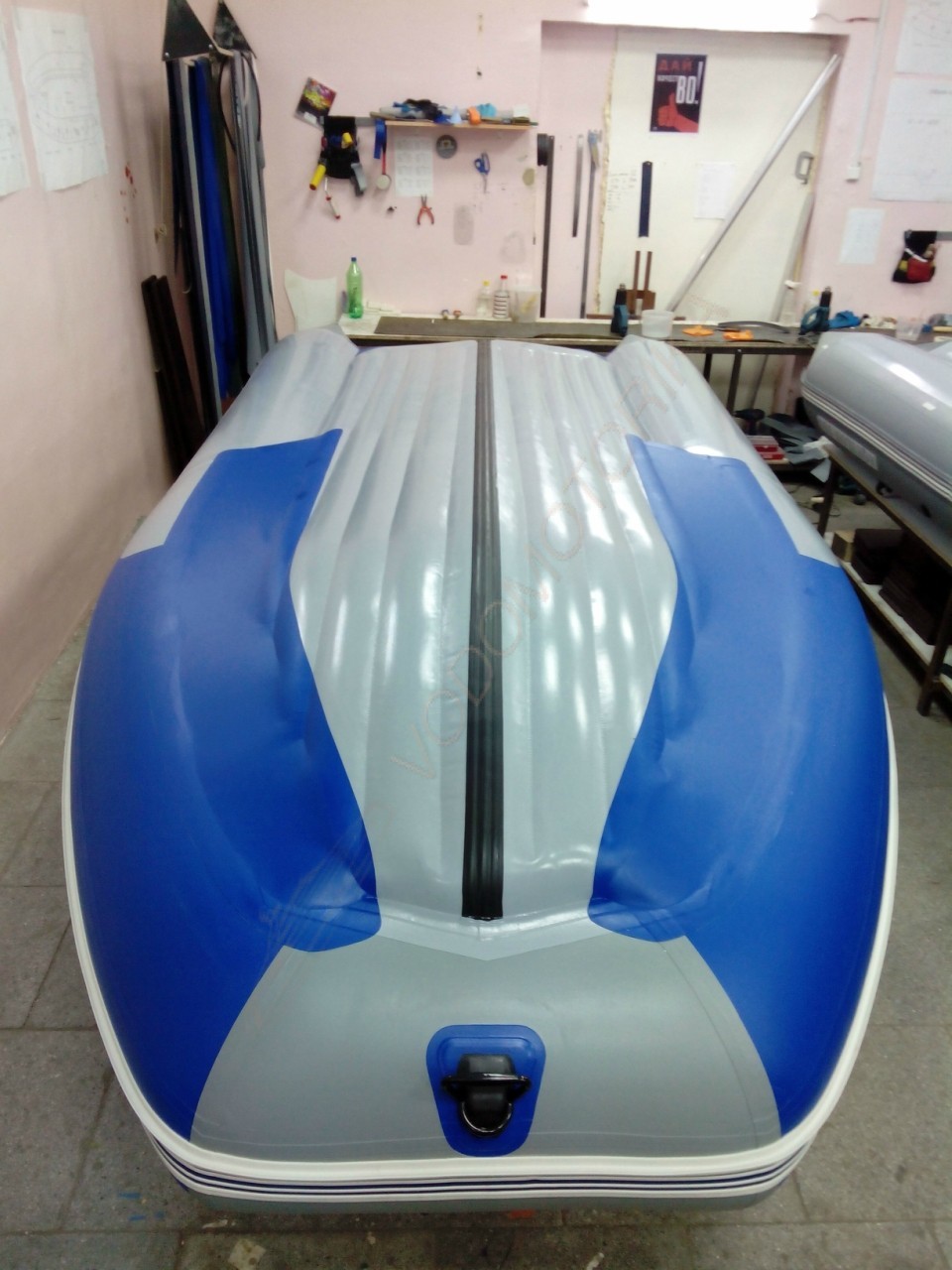 Низ днища (снизу лодки) обладает плотностью 1250 г/м2 и усилен защитным слоем ПВХ.