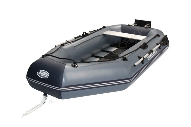 Основной цвет надувной лодки – серый, нос и корма - черная.