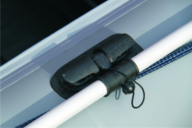 Безопасность пассажиров надувной лодки дополнительно обеспечивается натянутым вдоль борта леерным тросом. Для фиксации весел в стояночном положении предусмотрены крепления.