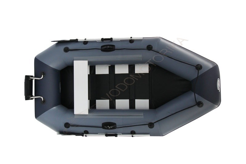 Основной цвет надувной лодки – серый, нос и корма - черная.