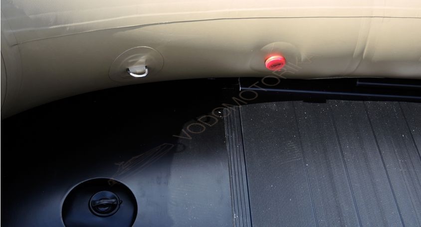 Надувная лодка оборудована двухточечным креплением под бак с топливом (оба крепления на пайоле) и фиксаторами для сумки на носу.